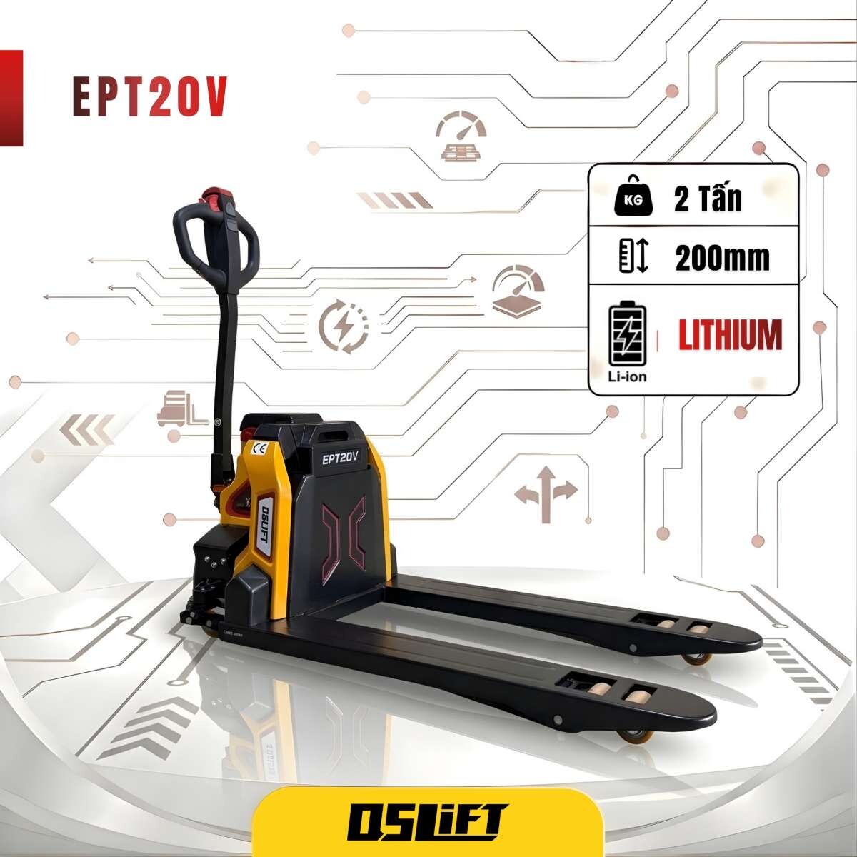 Doanh nghiệp của bạn đang cần vận chuyển các pallet hàng nặng 1.5 Tấn - 2 tấn nhưng xe nâng tay cơ lại quá tốn sức, còn xe nâng cỡ lớn thì chi phí đầu tư quá cao? Xe nâng điện thấp 2 tấn Lithium với model QSLift EPT20V dưới đây có thể là giải pháp cân bằng giữa hiệu suất và chi phí, đặc biệt phù hợp cho các kho hàng có lối đi hẹp.